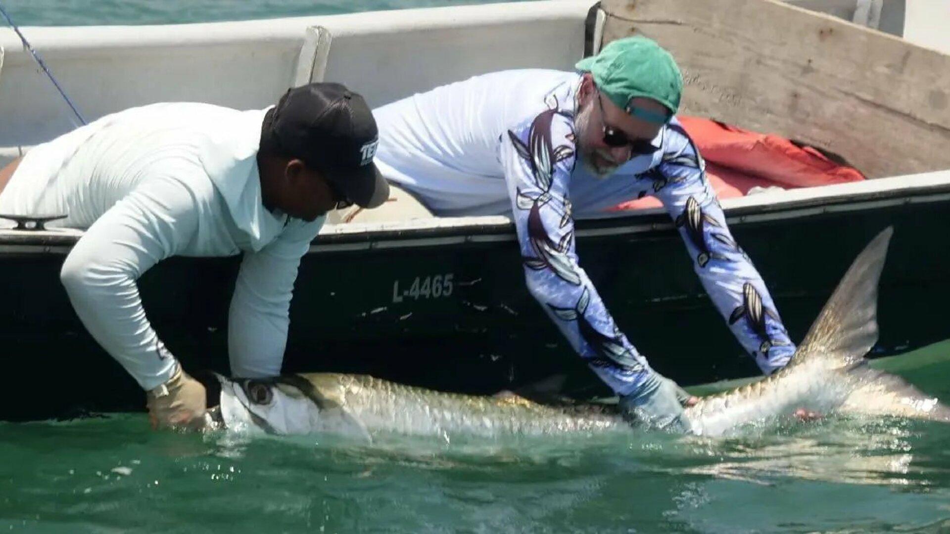Experience thrilling encounters with large tarpons at Tarponville Lodge, offering unparalleled opportunities for epic fishing adventures.